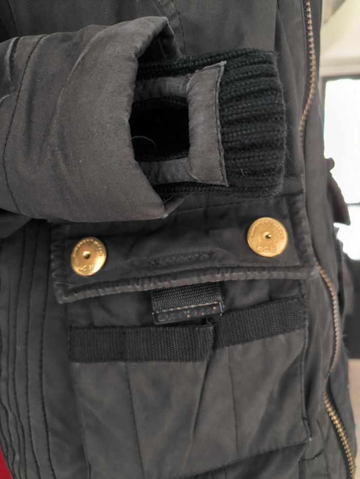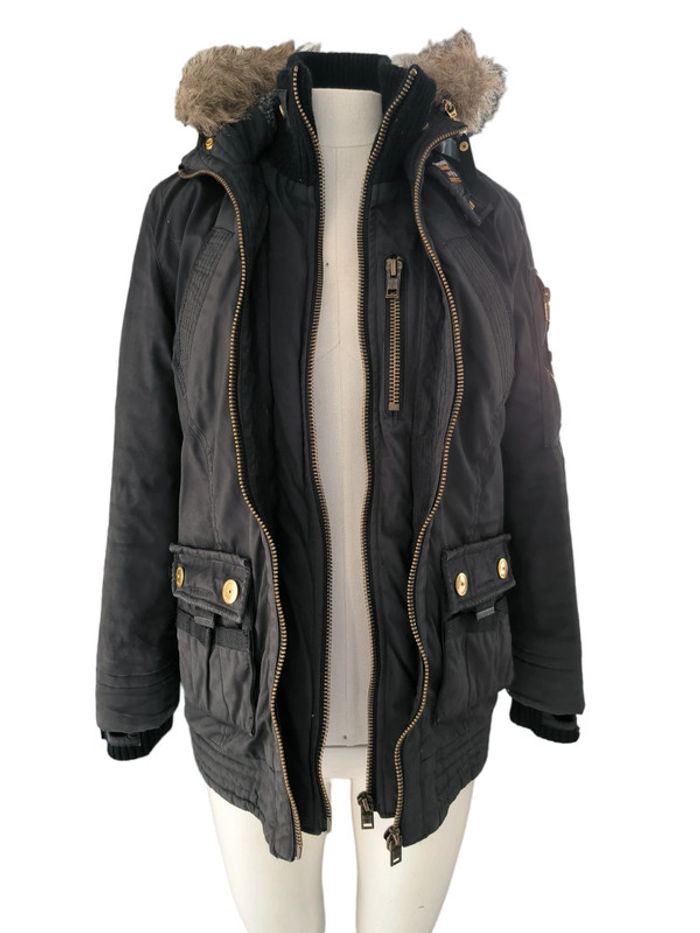 Parka Superdry Limited, noire, avec capuche, fausse fourrure amovible par fermeture éclair, plusieurs poches, placement pouce dans la manche, double fermeture du manteau. 2 poches poitrine, 4 poches taille, une poche secrète, 1 poche bras. Col montant, double manches. En tbe, quelques petits défauts voir photos. Taille M. Parka épaisse et chaude, de belle qualité. Prix négociable hors lot. Acheté dans les 150€. N'hésitez pas à regarder mon dressing, une remise allant jusqu'à 20% s'applique pour l'achat en lot.