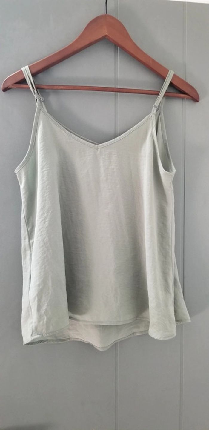 Ample, fluide, satiné, bretelles réglables, vert d'eau, taille S 36-38 N'hésitez pas à regarder mon dressing, une remise allant jusqu'à 30% s'applique pour l'achat en lot.