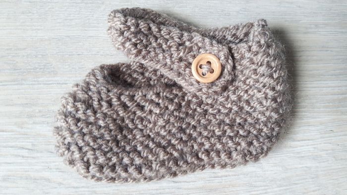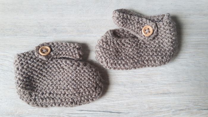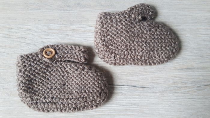 Chaussons bébé naissance tricotés avec lanière et petit bouton