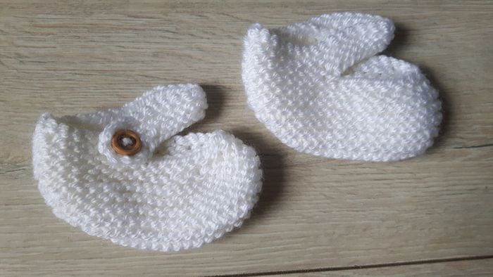 Chaussons bébé naissance en tricot avec lanière et petit bouton