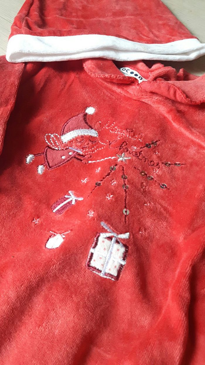 Robe de Noël 1 an avec bonnet offert (micro tâches sur le blanc). Robe en TBE. Cocoon la redoute. N'hésitez pas à regarder mon dressing, une remise allant jusqu'à 30% s'applique pour l'achat en lot.