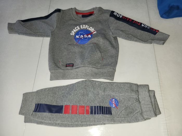 12 mois marque nasa très bon état Adidas 12 mois couleur moins éclatante que la photo mais reste en bon état Jeans 12 mois gemo bon état