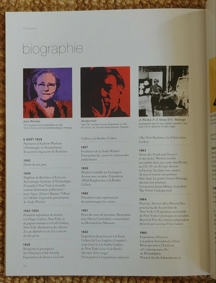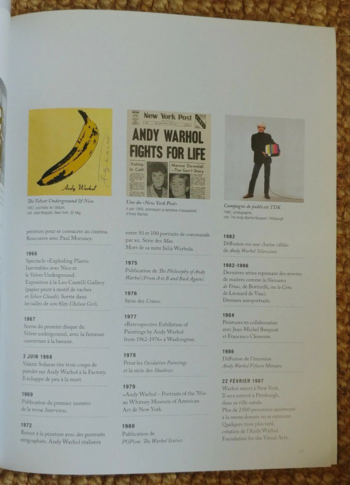 Le grand monde d'Andy Warhol au Grand Palais de Alain Cueff, Emmanuelle Lequeux, Judicaël Lavrador et Ann Hindry (2009). Comme neuf! Envoi uniquement avec Mondial Relay ou Collissimo, merci! En 1962, Andy Warhol peint les portraits de Marilyn Monroe, Liz Taylor, réinterprète La Joconde et Elvis Presley. De 1967 à 1987, il réalise, sur commande et selon un procédé qui se systématise, les portraits de dizaines de personnalités diverses, célèbres ou inconnues, remettant ainsi à l'honneur le genre du Portrait, en y appliquant de nouveaux codes. Dans ce miroir, tout ce grand et petit monde se regarde, fasciné. Exposition organisée par la Réunion des musées nationaux en collaboration avec le Andy Warhol museum de Pittsburgh et réalisée avec le soutien de LVMH / Moët Hennessy, Louis Vuitton.