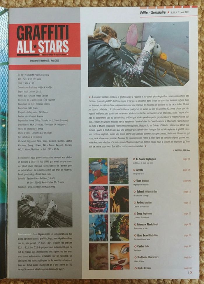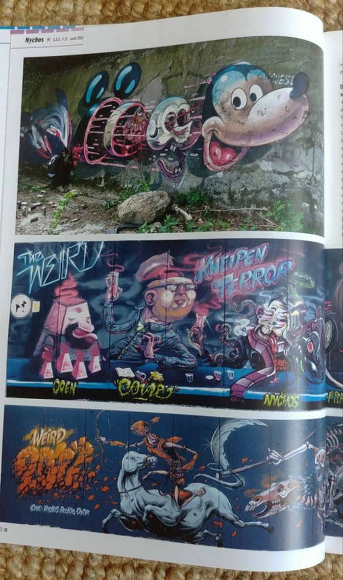 Magazine graffiti all stars numéro 17. Trimestriel juillet/août/septembre 2012. Tous les 3 mois, Graffiti All Stars propose un tour d'horizon complet des personnages peuplant le monde du graffiti… Un concept inédit et original, et le résultat est très réussi. Comme neuf, collector. Envoi uniquement avec Mondial Relay ou Collissimo, merci! D'autres numéro de ce magazine sont disponibles dans mon dressing. N'hésitez pas à faire un lot, les réductions sont activées.