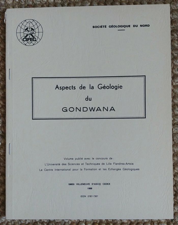 Aspects de la géologie du Gondwana, volume 107 de Annales de la Société géologique du Nord (Lille, France), Université des sciences et techniques de Lille Flandres-Artois, International Center for Training and Exchanges in the Geosciences (1988). Réductions sur les lots activées! Envoi uniquement avec Mondial Relay ou Collissimo, merci!