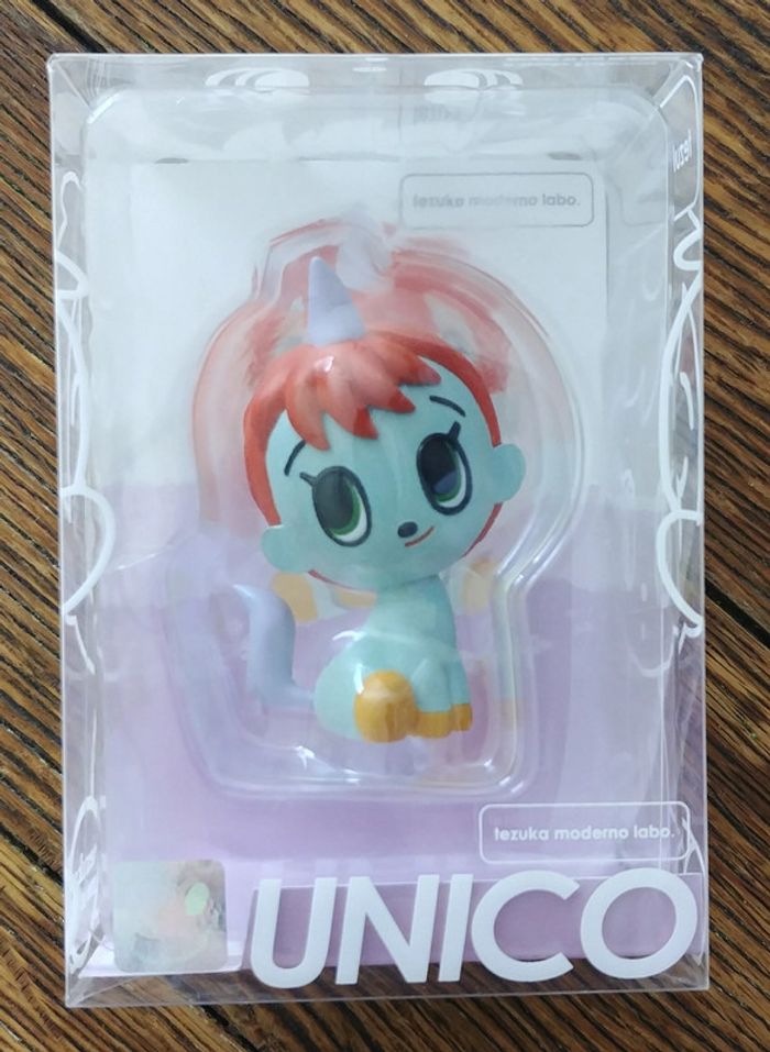 Rare figurine Tezuka Moderno Labo de la petite licorne UNICO achetée en 2010 ou 2011 dès sa sortie. Jamais sortie de sa boite. Maison non fumeur. Envoi uniquement avec Mondial Relay ou Collissimo, merci!