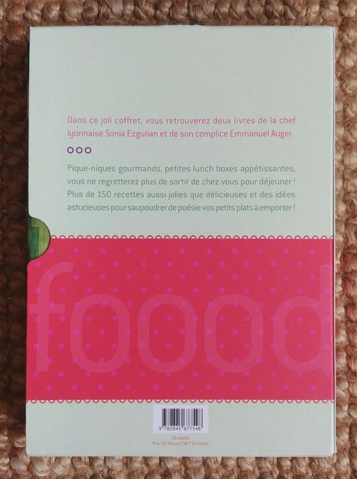 Coffret composé de deux livres : - mes petites boites à manger ; - petits festins nomades. Super idée pour cadeau de Noël! Réductions sur les lots activées. 😊 Envoi uniquement avec Mondial Relay ou Collissimo, merci!