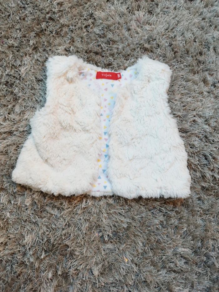 Veste sans manche blanche a poil style veste berger 3 mois Très bon état Réductions sur les lots activé ☺️ #urgent #lot #reduction #fille #bebe #decembre #hiver #3mois #grosdressing #naissance #cadeau #tresbonetat