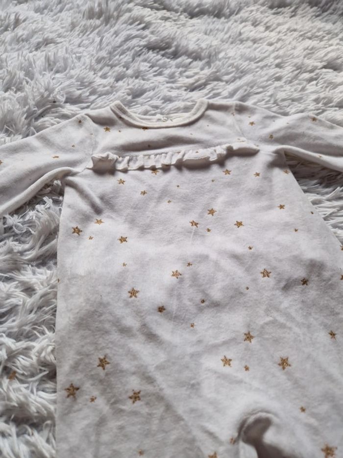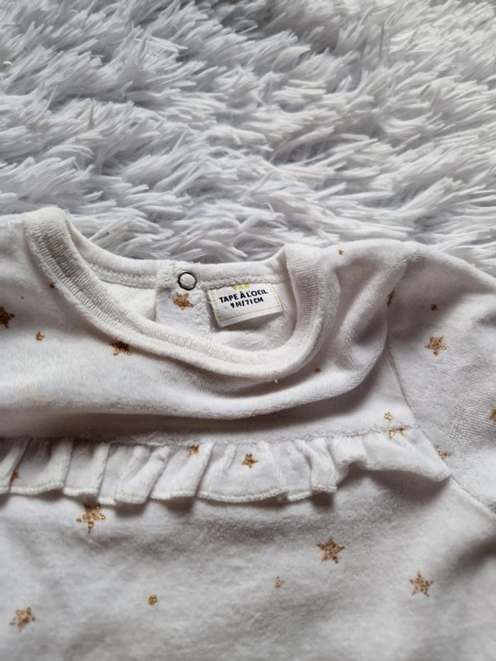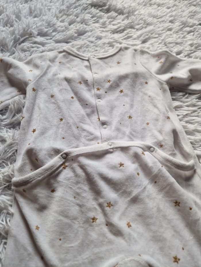 Pyjama 1 pièce, 9 mois , tape a l'œil, très bon état, blanc , doré, étoile #melo1410_9mois #melo1410_pyjama
