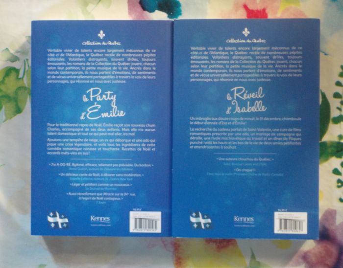 LA PARTY D'EMILY et LE REVEIL D'ISABELLE de Nadia LAKHDARI KING Ed. KENNES Bon état Traces d'étiquettes dans l'angle supérieur gauche des 2 livres 2 petits éclats dans l'angle supérieur gauche de "Le réveil d'Isabelle" LA PARTY D'EMILIE Pour le traditionnel repas de Noël, Emilie reçoit son nouveau chum Charles, accompagné de ses deux enfants. Mais elle n'a aucun talent domestique et tout ce qui peut mal aller, ira mal. Ajoutons une tempête de neige, un ex qui débarque et une ado qui pique une crise légendaire, et voilà tous les ingrédients de cette comédie romantique cocasse et touchante. Recettes de Noël et accords mets-vins en sus ! LE REVEIL D'ISABELLE Un imbroglio aux douze coups de minuit, le 31 décembre, chamboule le début d'année d'Isa et d'Emilie ! La recherche du cadeau parfait de Saint-Valentin, une cure de films romantiques prescrite par une ado, un mariage de campagne qui déraille, une rivale machiavélique au travail et un dîner de Pâques punché : voilà les hauts et les bas de la vie de deux amies pétillantes et attendrissantes à souhait.