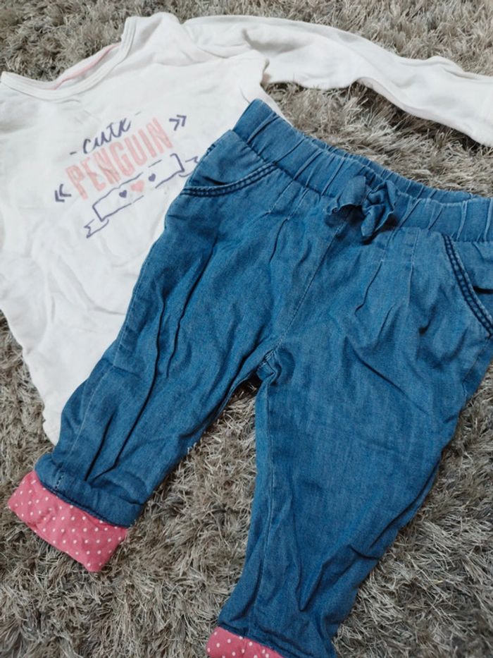 Ensemble bébé fille 6 mois t-shirt et pantalon - photo numéro 1