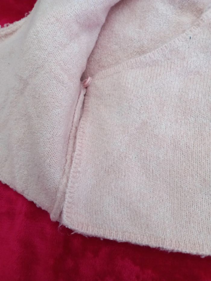 En bon état, un petit peu boulochée, jolie veste en cache cœur.