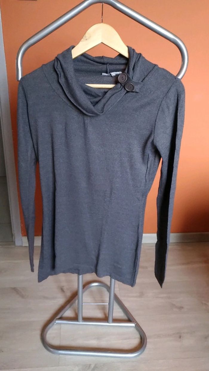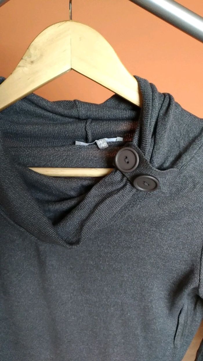 Bon état pull en laine fin, gris avec col original avec ses 2 boutons, taille 38/40