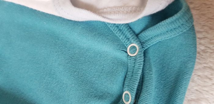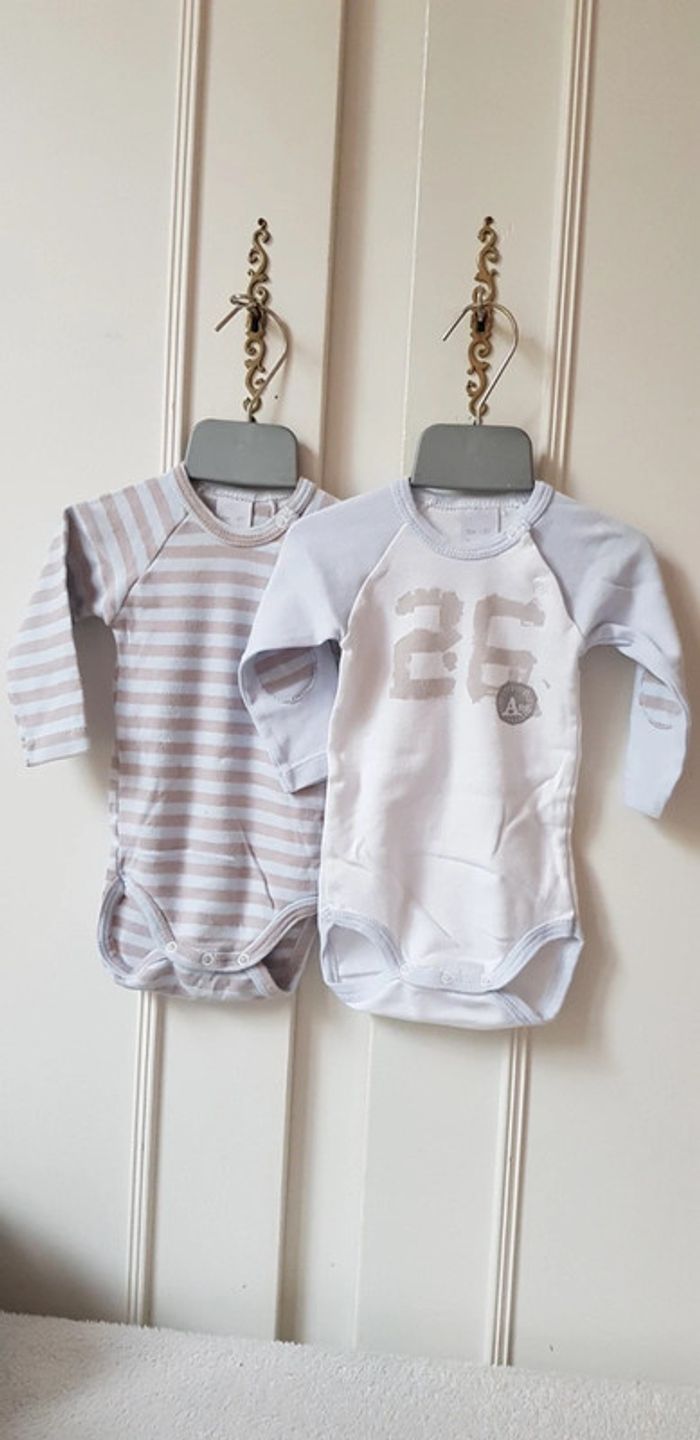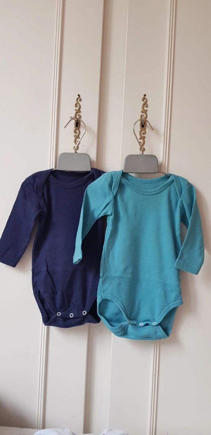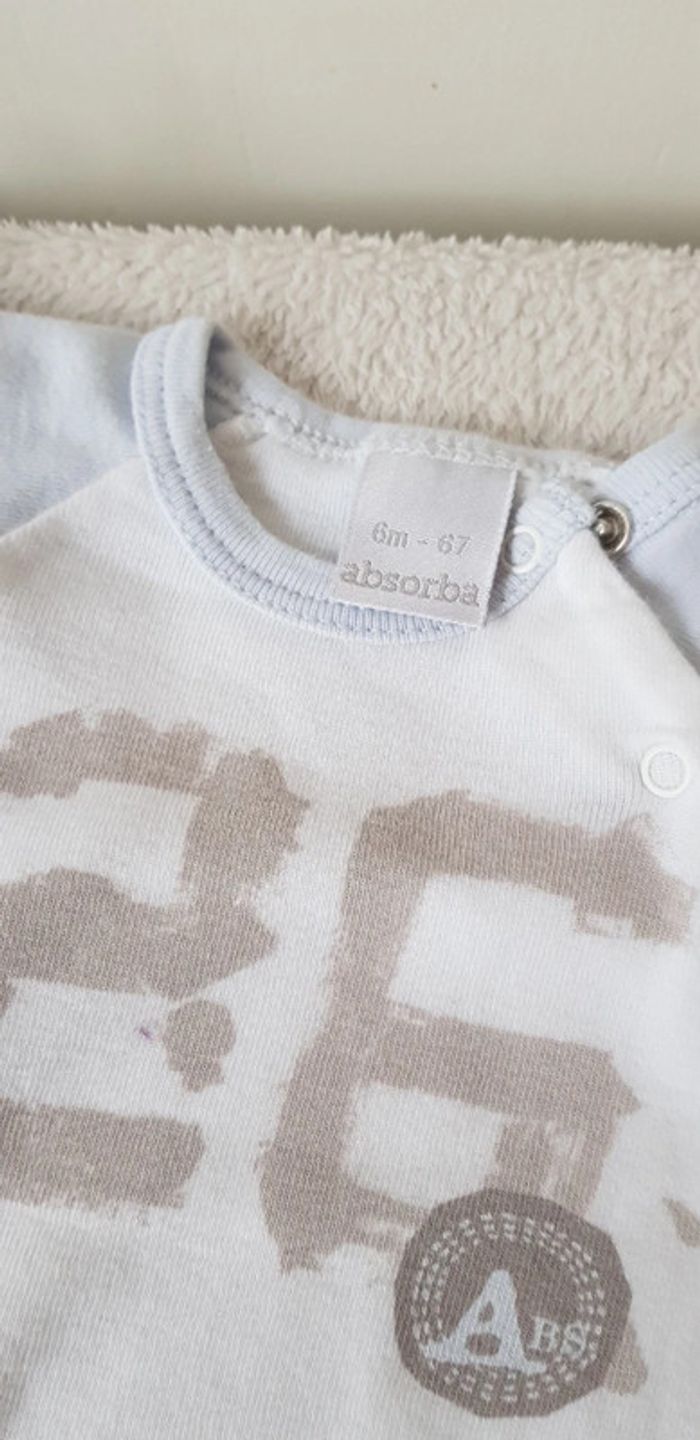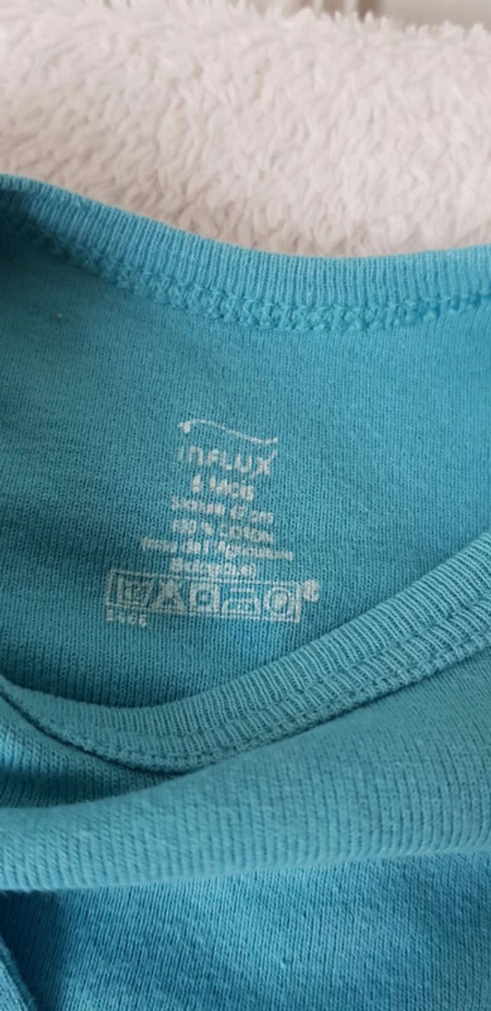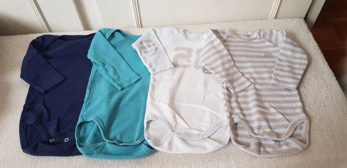Bodies taille 6 mois. 2 de marque absorba. 2 de marque influx. Bon état, le body bleu turquoise a un défaut visible sur la dernière photo