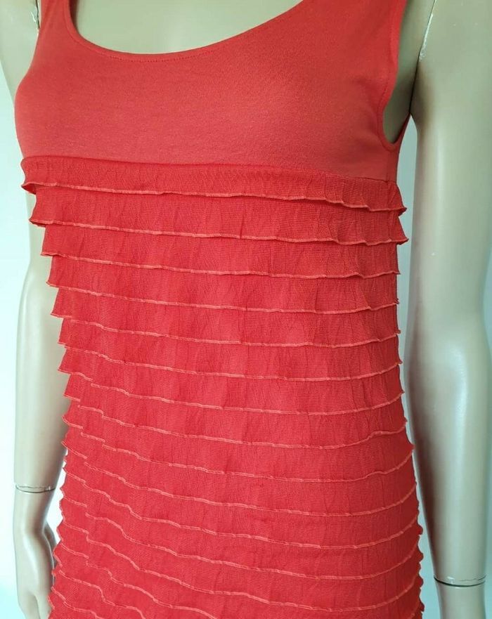 Une robe droite orangée à volants de 81cm de long Fashion Express Taille 36/38