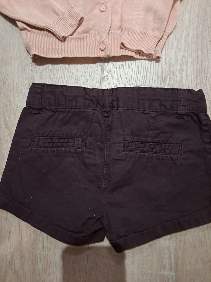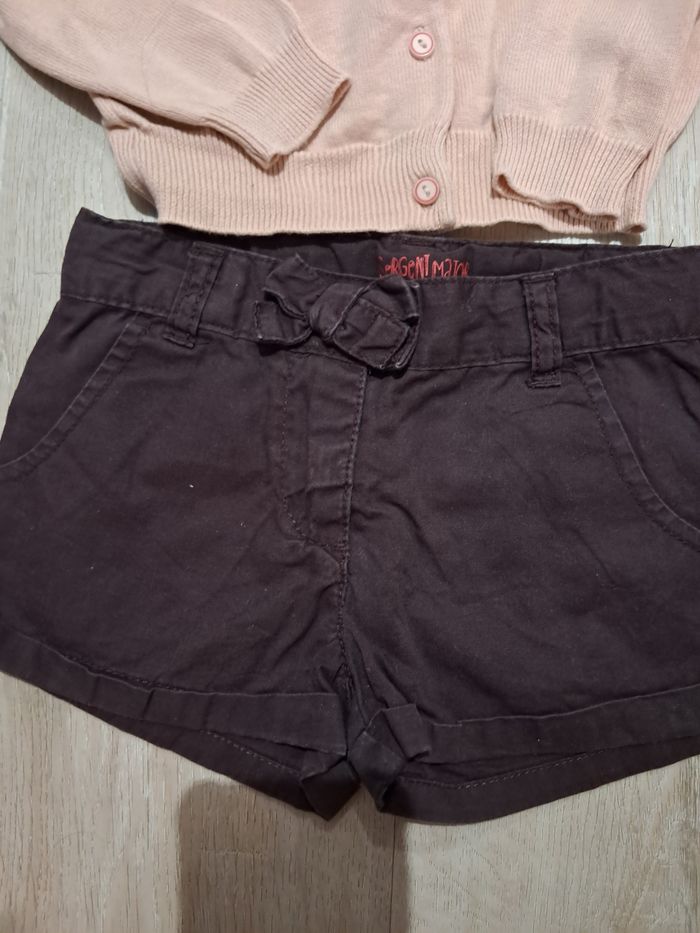 Tenue sergent major portée 2x 1 short prune et le gilet rose assorti avec logo prune assorti au short. Le tout porté 2x Maison non fumeur, pas d'animaux, première main. D'autres vetements dont neuf sur #laul57fille3ans