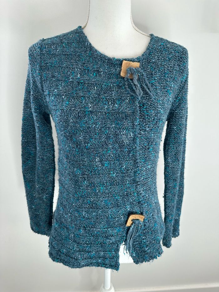 Pull moucheté bleu et turquoise Vintage T38 M - photo numéro 3