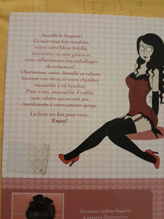 Aaaahh la lingerie! 👠👙🩱🎽 👙Ce mot vous fait trembler, votre carte bleue frétille, vos tiroirs en sont pleins et vous collectionnez les emballages de créateurs ? 👙Charmeuse, satin, dentelle et rubans hantent vos rêves et votre chambre ressemble à un boudoir.👙👠 Pour vous, impossible d'enfiler une culotte qui ne soit pas coordonnée à votre soutien-gorge. 👙🩱 👙💥Ce livre est fait pour vous. Enjoy !💥 Éditeur ‎Paquet (26 mai 2010) Langue ‎Français Broché ‎95 pages Poids de l'article ‎200 g Dimensions ‎14.9 x 0.7 x 21.1 cm Moyenne des commentaires client 5,0 sur 5 étoiles