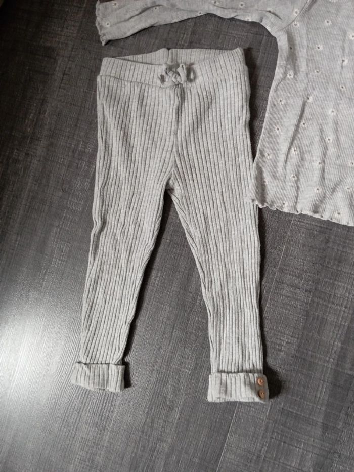 Legging côtelé gris détail bouton + pull fin côtelé - photo numéro 2