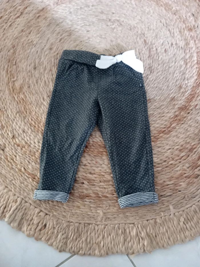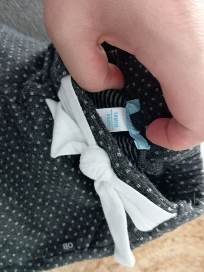 Petit pantalon matière " jogging " . Gris foncé ceinture noeud blanc - photo numéro 1
