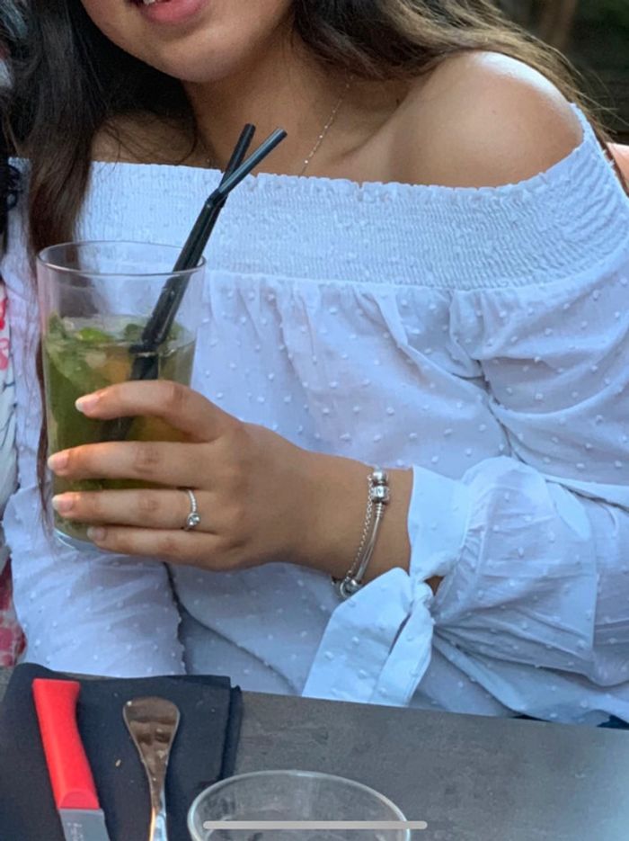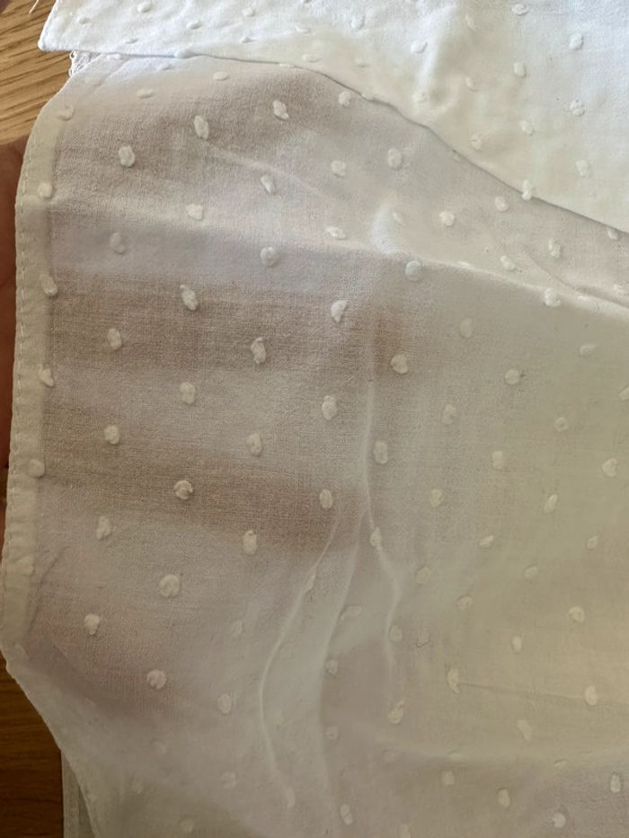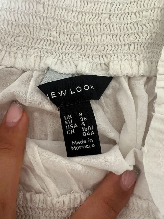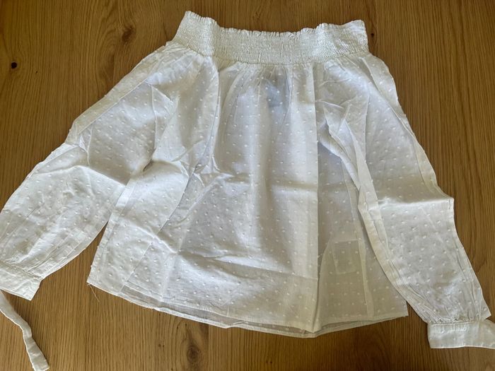 Jolie top avec épaules dénudées New look Taille S Légère transparence Très bon état Tissu plumetis