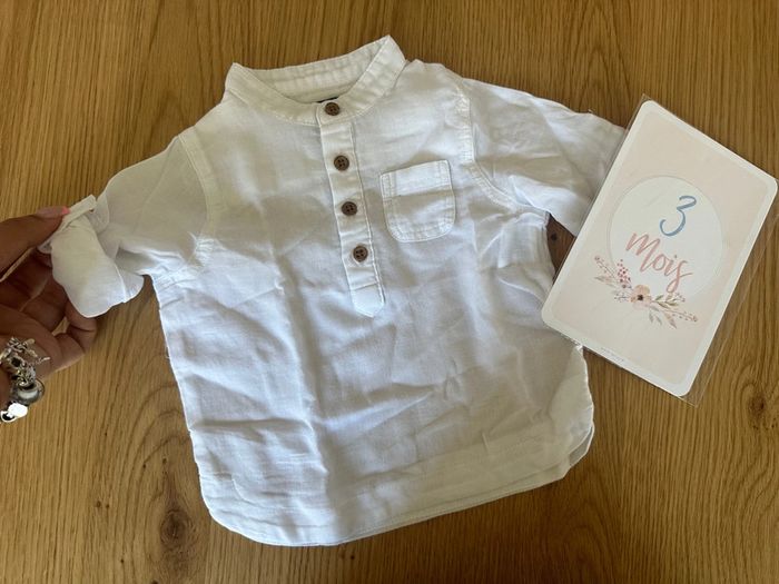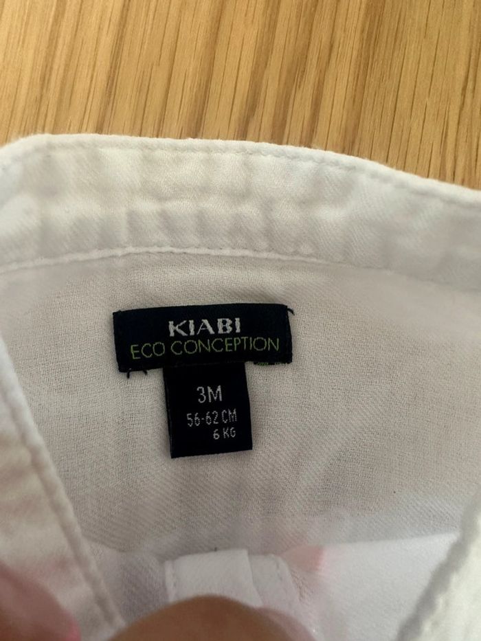 Chemise Kiabi blanche pouvant se porter manches longues ou retroussées (Grace à un bouton) Taille 3 mois Très bon état