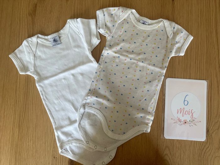 Lot de 2 bodies Petit bateau motifs coeurs manches longues Taille 6 mois Très bon état