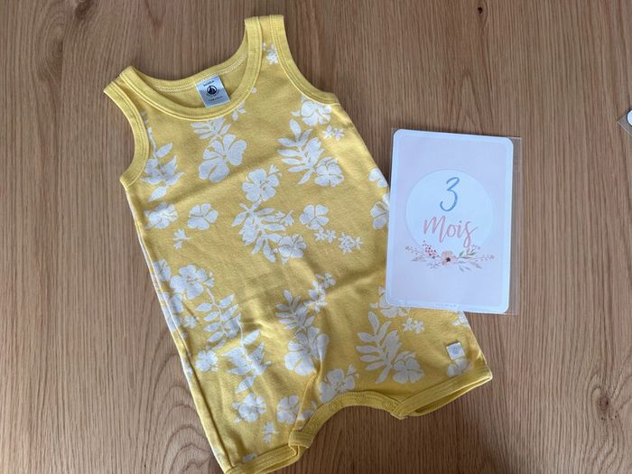 Combinaison short petit bateau Jaune à feuille blanche Taille 3 mois très bon état