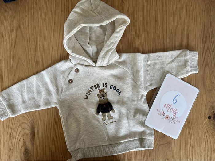 Sweat à capuche de la marque TAO Inscription « winter is cool » avec nounours taille 6 mois Neuf sans étiquette