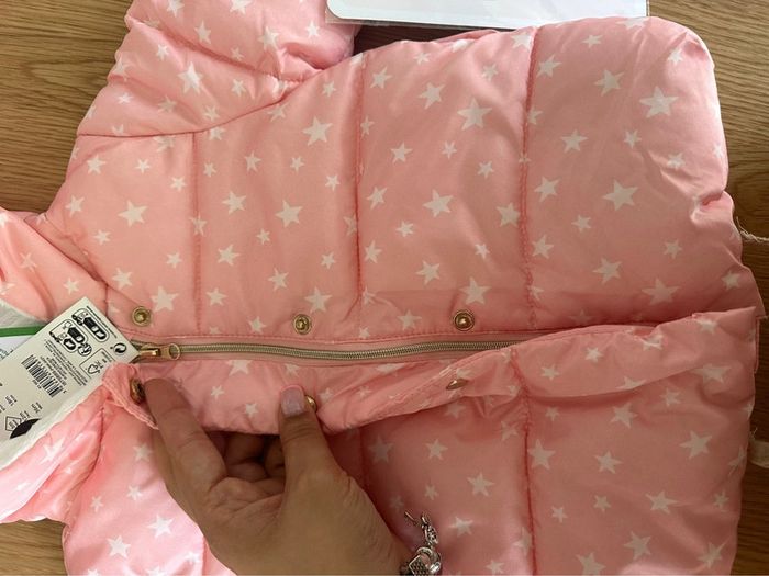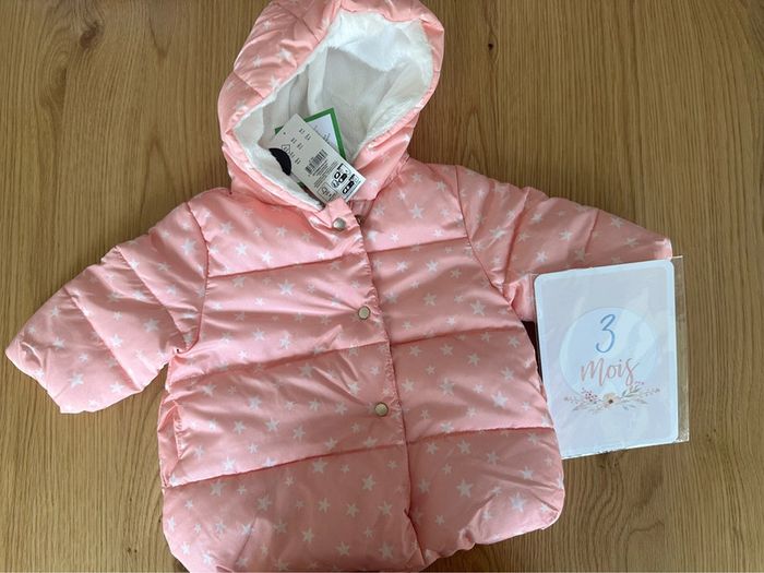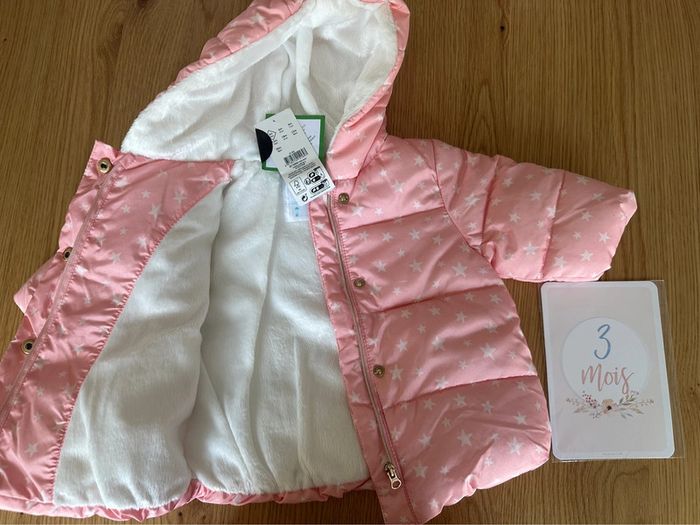Doudoune fille rose avec des étoiles blanches Taille 3 mois Neuve avec étiquette