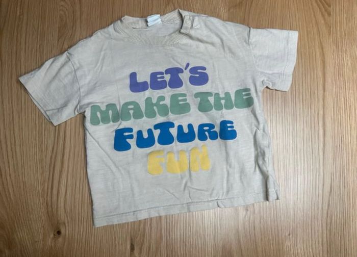 T-shirt oversize H&M avec inscription colorée « let’s make the future fun » Taille 12/18 mois Très bon état