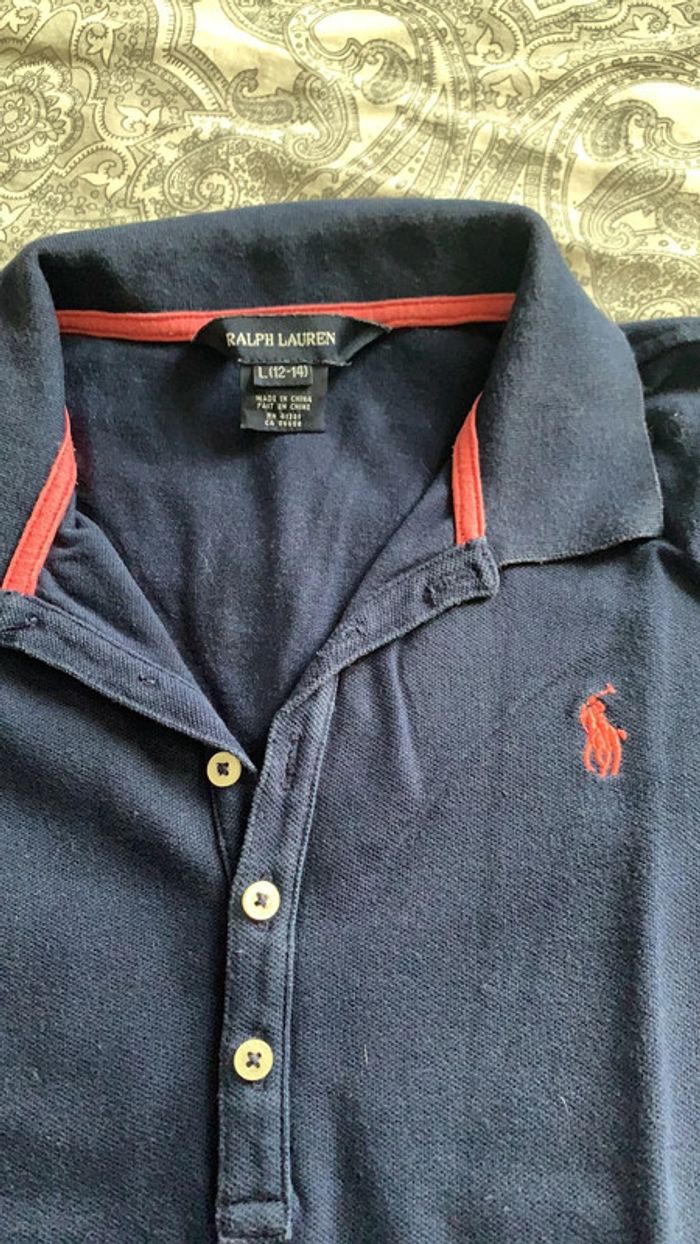 polo Ralph Lauren taille L enfant (correspond a du 12/14 ans). en très bon état. bleu et rose