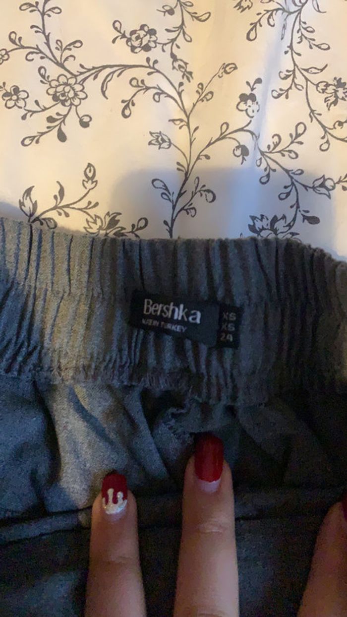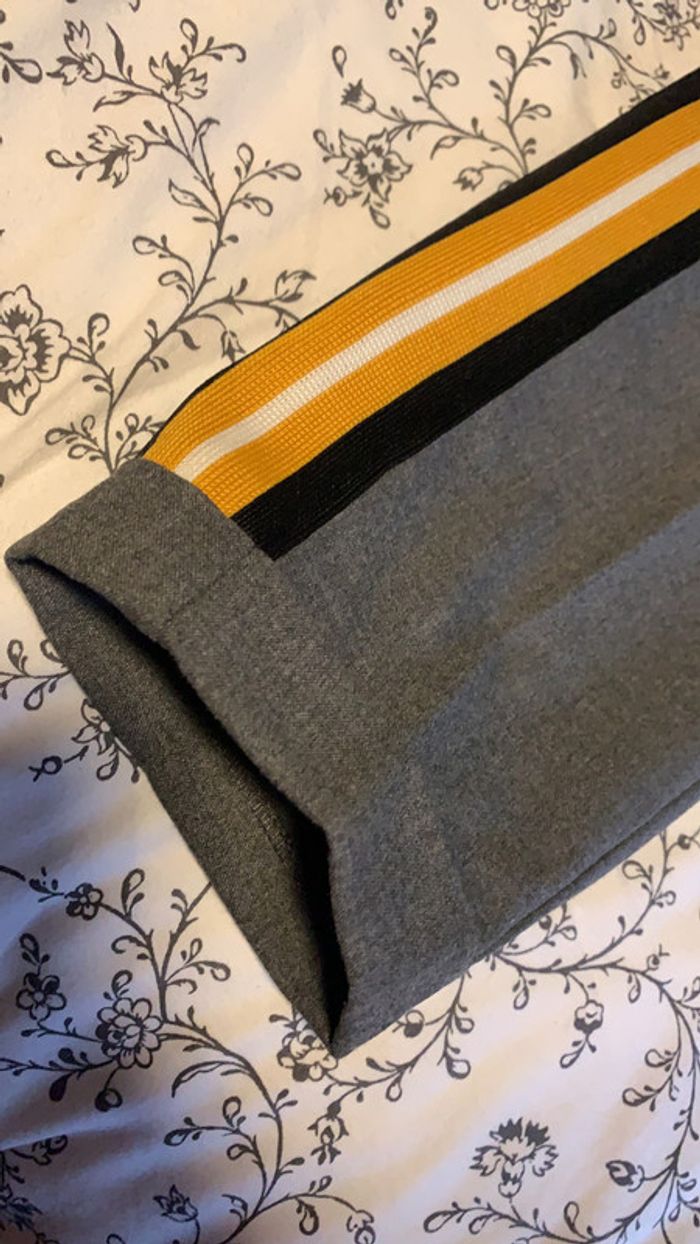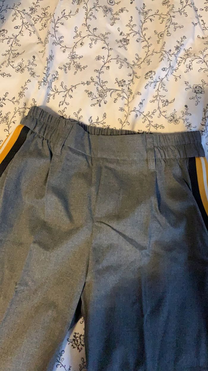 chino gris avec bandes jaunes taille Xs de chez bershka comme neuf portée 1 seule fois très joli resserré à la taille