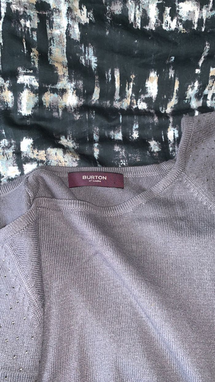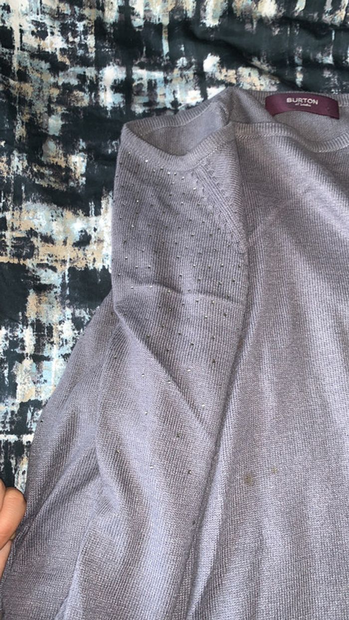 pull gris manches courtes et manches bouffantes strass sur les manches taille 4 Burton