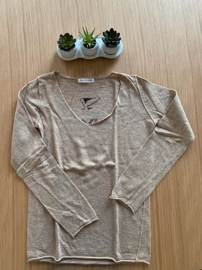 pull beige et marron avec pomme NUC Taille S/M comme neuf