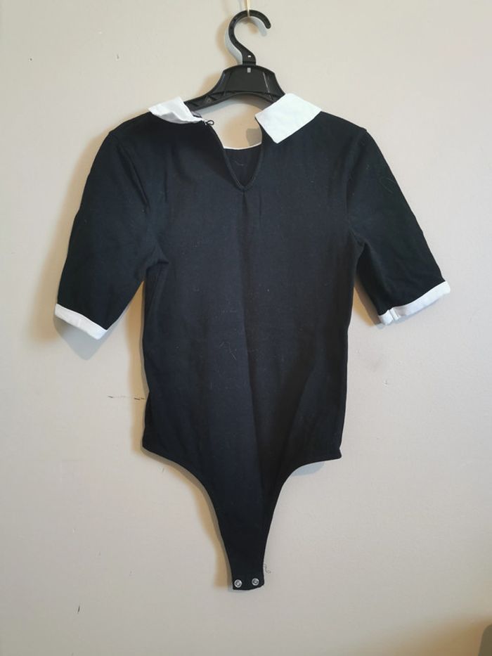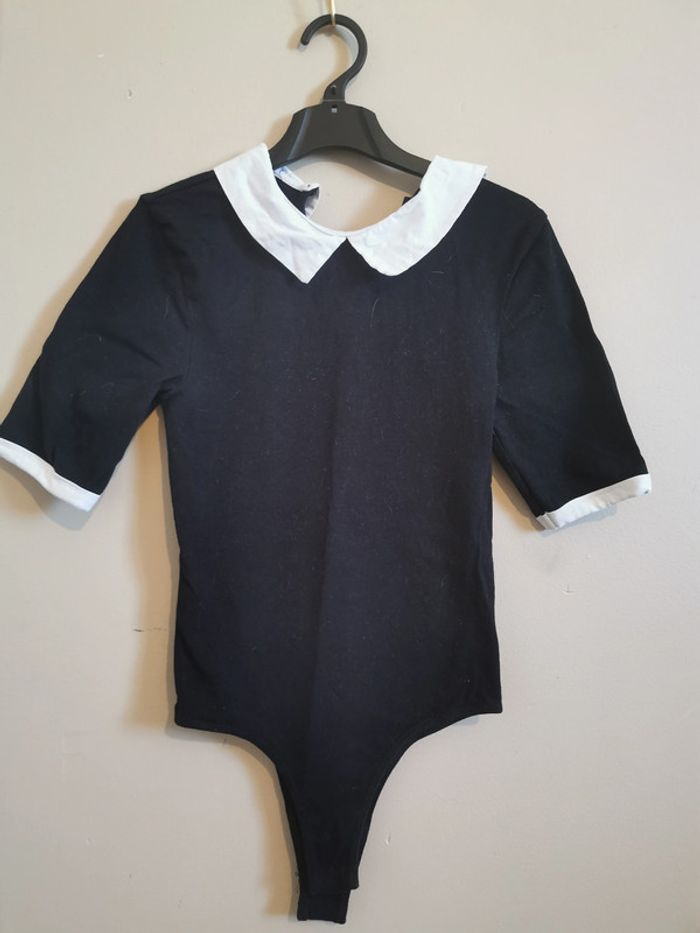 Body élégant de couleur noire avec col claudine et revers des manches contrastants en blanc. Design à manches trois-quarts, idéal pour une tenue chic et confortable. s, en bon état, parfait pour diverses occasions associer le avec un jean et c'est parfait ! Body taille XXS Jean FR30 #laetitiamhx83470_enfantfille #jennyfer#tenuecomplete#ados#body#jean