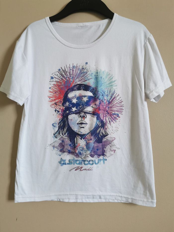 Afficher votre amour pour Stranger Things avec ce t-shirt ! Ce t-shirt blanc est orné d'un design unique mettant en scène Eleven, l'une des héroïnes de la série à succès Stranger Things. On la voit avec les yeux bandés, entourée d'effets de peinture aqueuse qui évoquent des feux d'artifice. Le motif est coloré et original, parfait pour les fans qui souhaitent afficher leur passion pour la série.