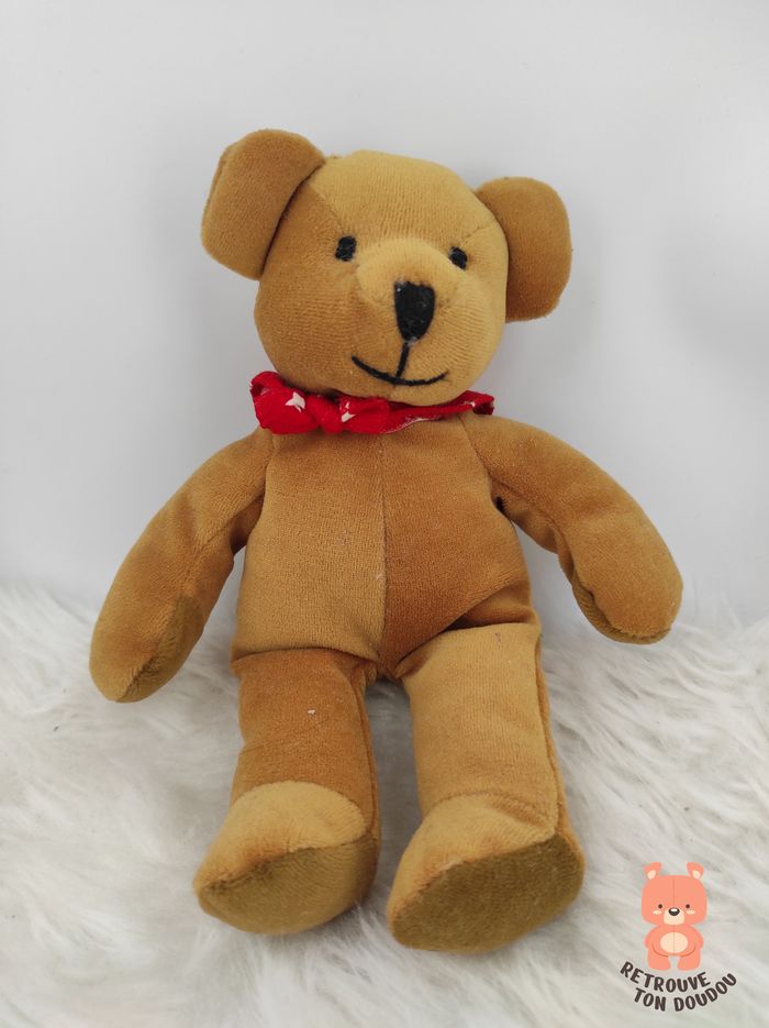 🧸 Doudou Peluche Ours Beige Cuivre avec Bandana Rouge à étoiles, Sunkid 📏 Dimension : 21 cm environ ✨ Occasion, très bon état 🧼 Passage vapeur 👀 Vous achetez le doudou que vous voyez sur les photos