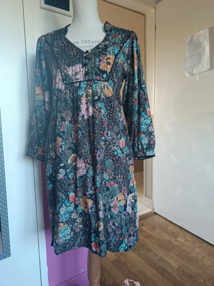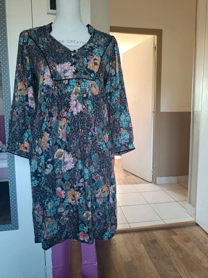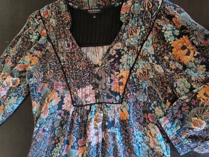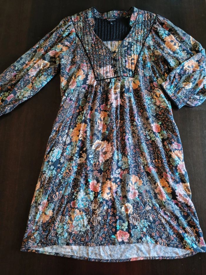 Robe MORGAN Impressions fleuries Décolleté V fermé par boutons Manches longues Poches 100% Viscose TAILLE 36 TRES BON ETAT Allez voir mes autres ventes!