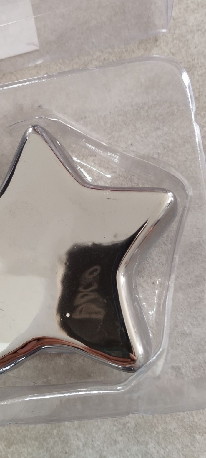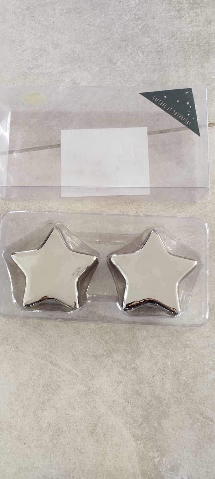 Bonjour, Je vends cette salière et cette poivrière en forme d'étoile neuf jamais servi, petit défaut sur les étoiles voir photo