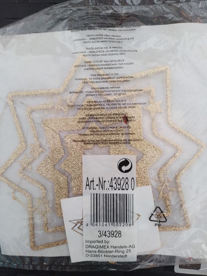Etoile dore pour deco de Noël a coller sur fenêtres. Neuf dans son embalage.