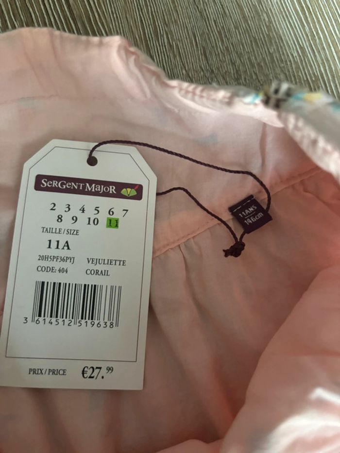 Jupe neuve 11 ans sergent major, juste lavée. L’étiquette je l’avais coupe initialement. Malheureusement ma fille refuse de la porter…
