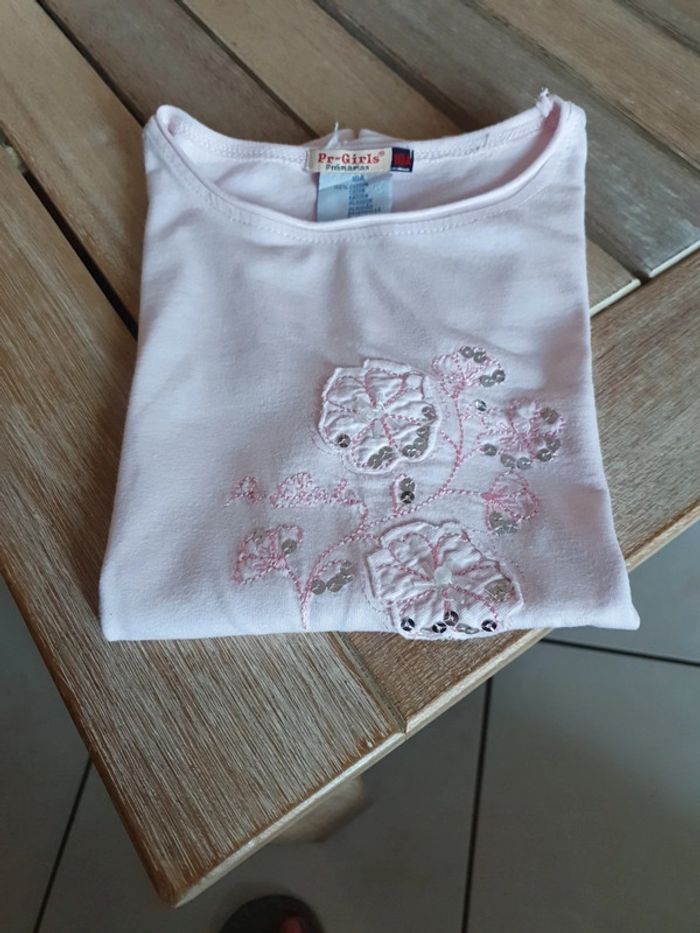 Tee shirt rose fillette brodee avec strass Taille 10 ans Bon état Couleur rose pâle Marque Pr girl de Premaman