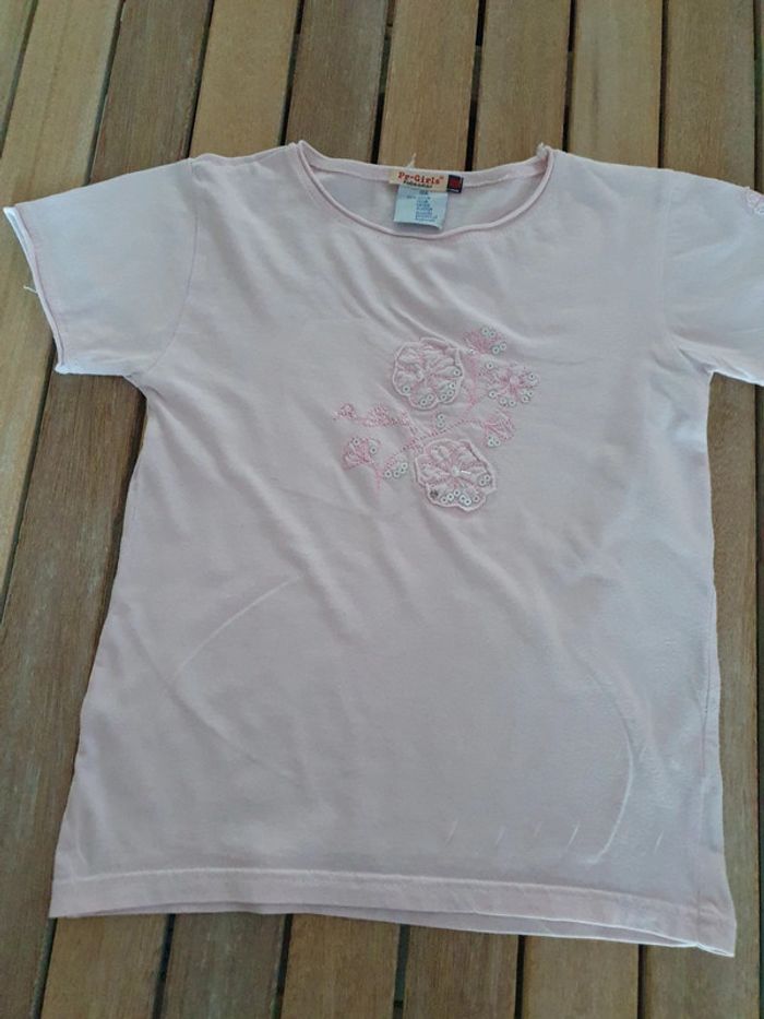Tee shirt rose brodee  fillette taille 10 ans - photo numéro 1