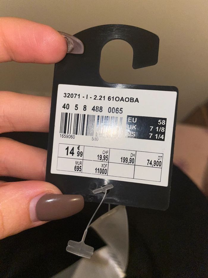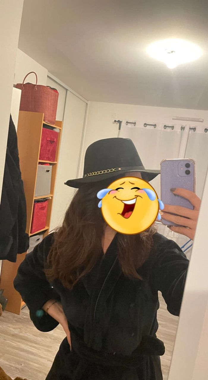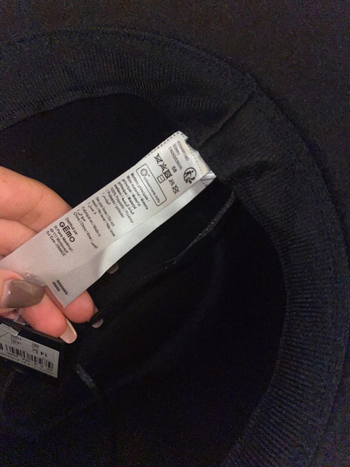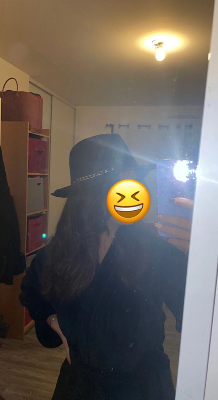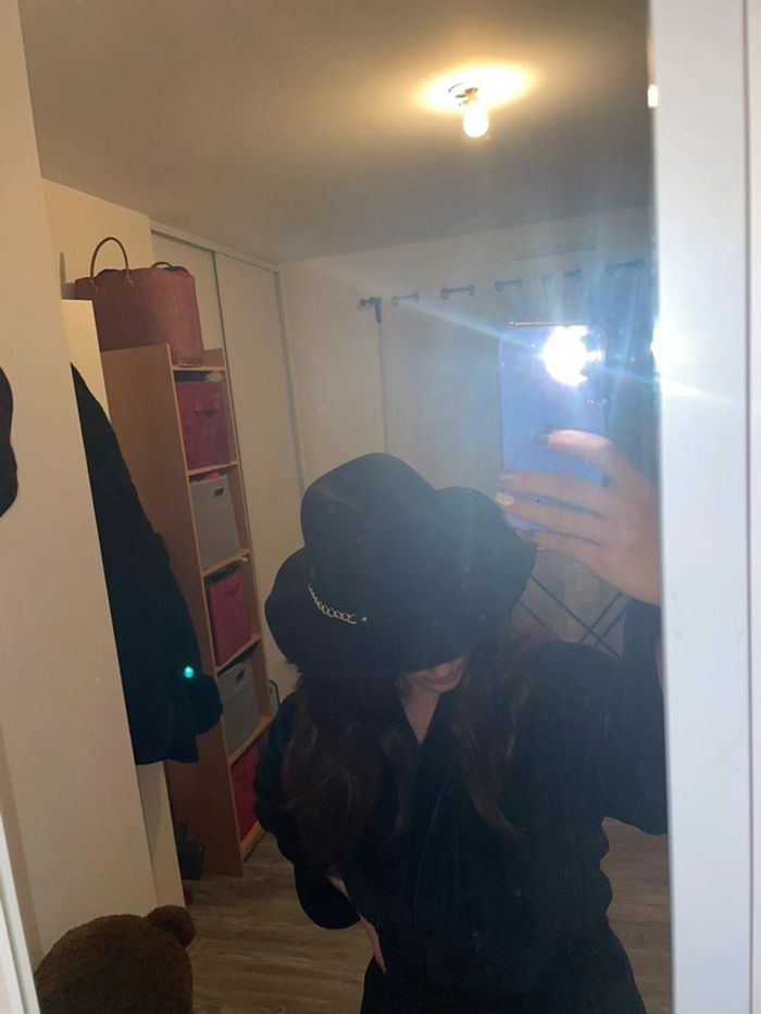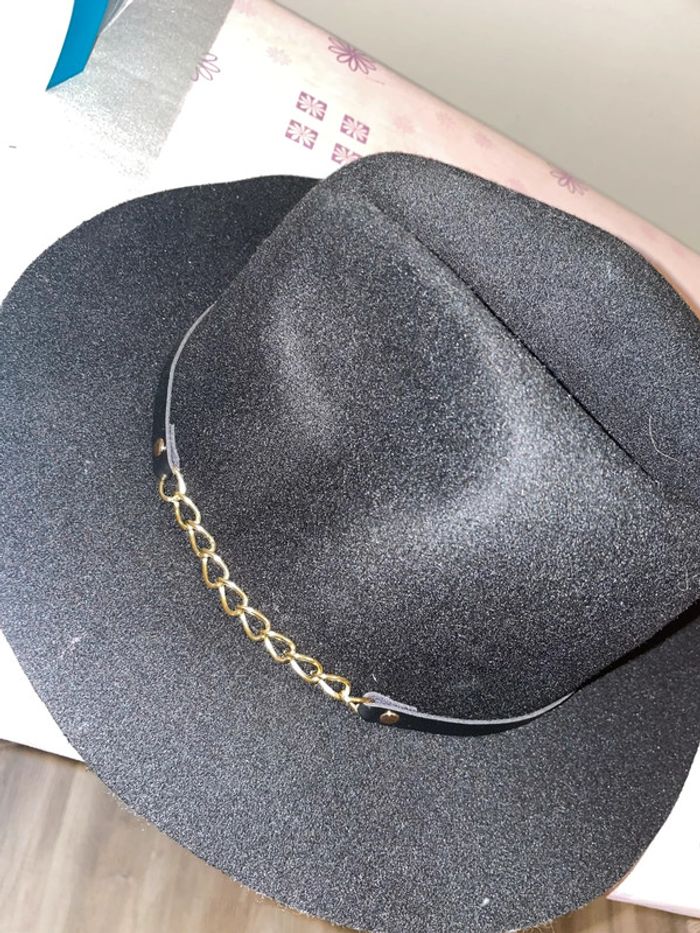 chapeau noir avec chên sur un côté tout neuf jamais porté encore étiquette taille unique possibilité de serrer à l’intérieur