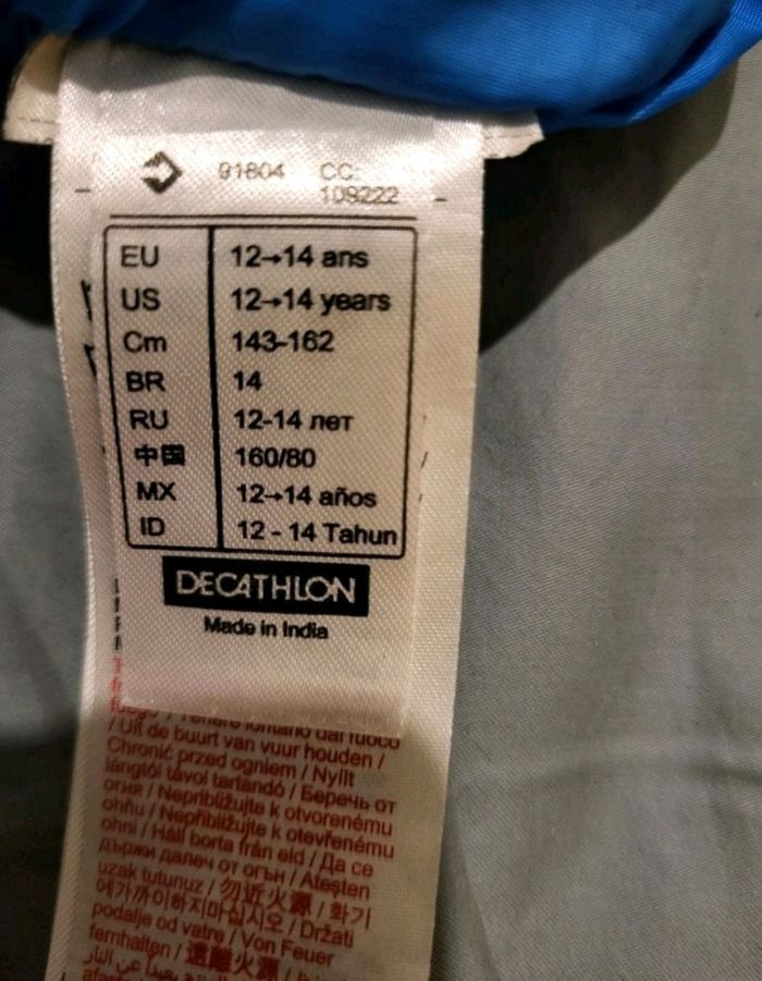 Veste imperméable bleue Kway Quechua 12/14 ans. Neuf jamais mis mais il y a une tâche due au stockage