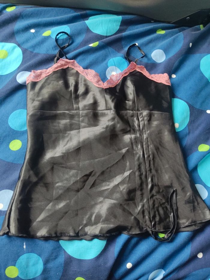 Noir avec dentelle rose Lacet sur le devant Taille m