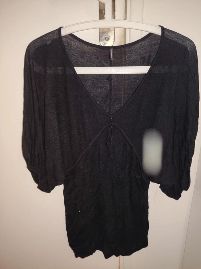 Pull noir manche courte avec élastique col v Petit trou dans le dos peut être réparer