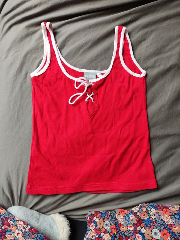 Débardeur rouge et blanc 3suisses 38 40 avec lacet devant