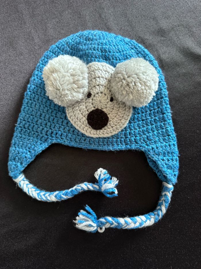 Bonnet hiver crochet Koala bleue 1-2 ans - photo numéro 1